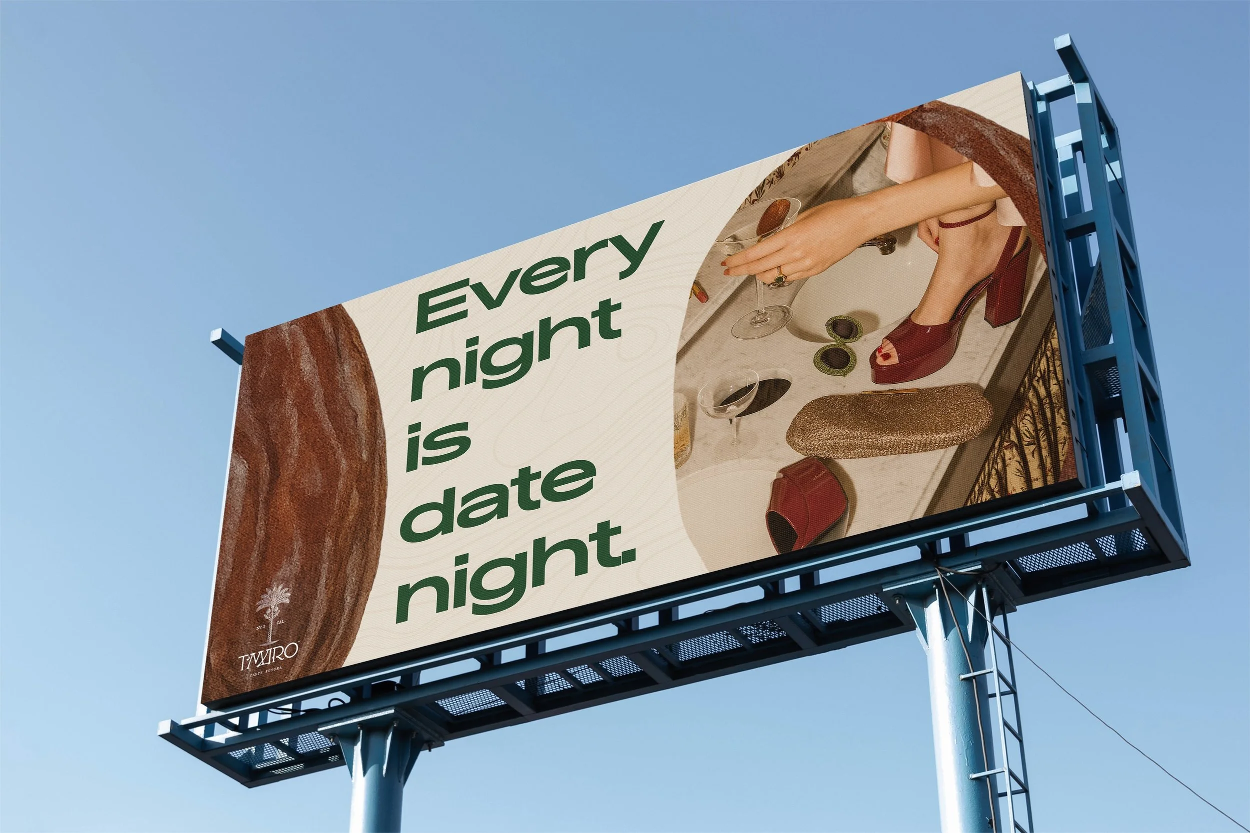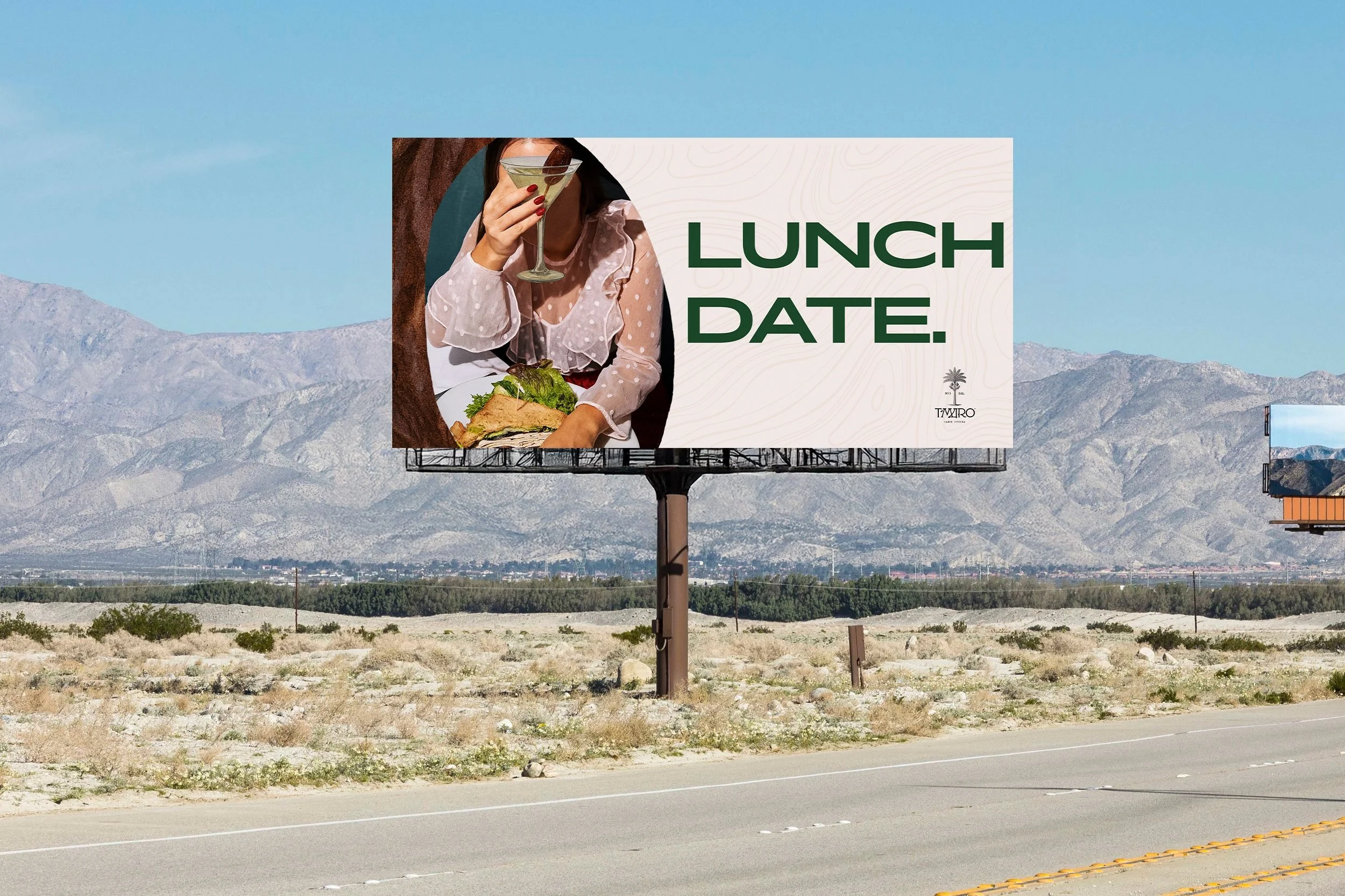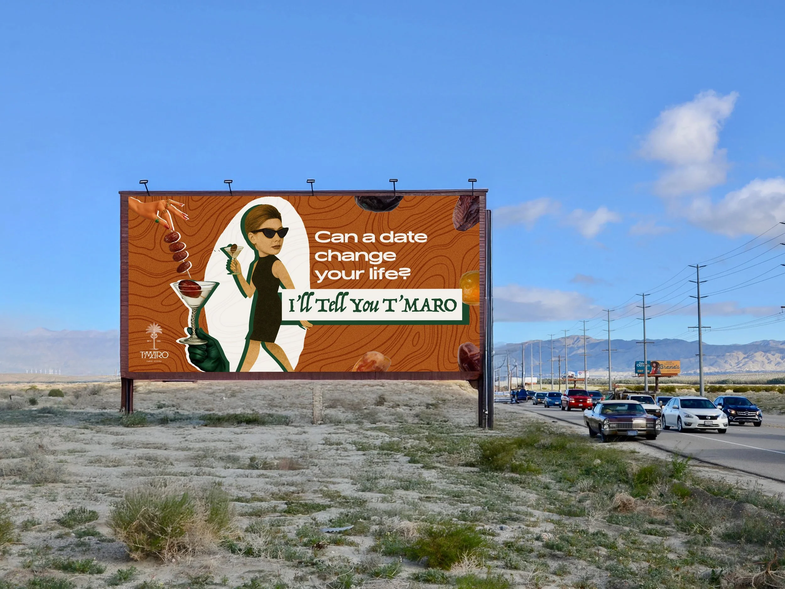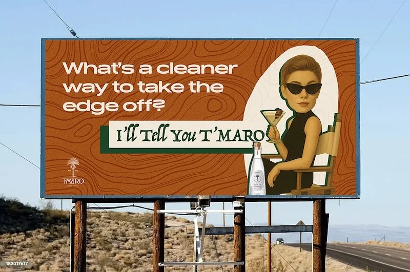In my final week, I was invited to tackle a project for T’MARO — a first-of-its-kind, sustainable, woman-owned spirit made from Coachella Valley dates. My AD partner and I were challenged to create a set of billboard concepts that introduced the brand and spotlighted its singular ingredient, while holding its own as an OOH placement.